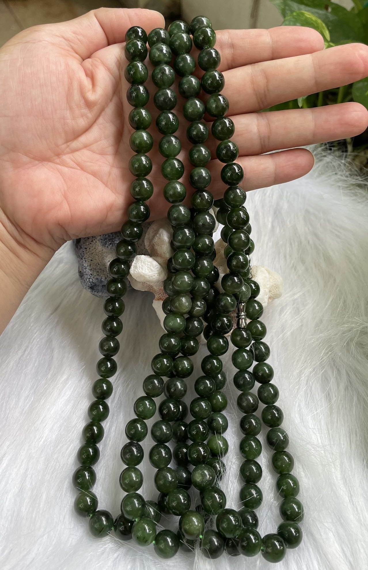 Dây Chuỗi Hạt Ngọc Bích Thiên Nhiên Đeo Cổ , Xanh Đậm, lLy Hạt 10mm , Sang Đẹp, Thanh Nhã & Rất Đẹp