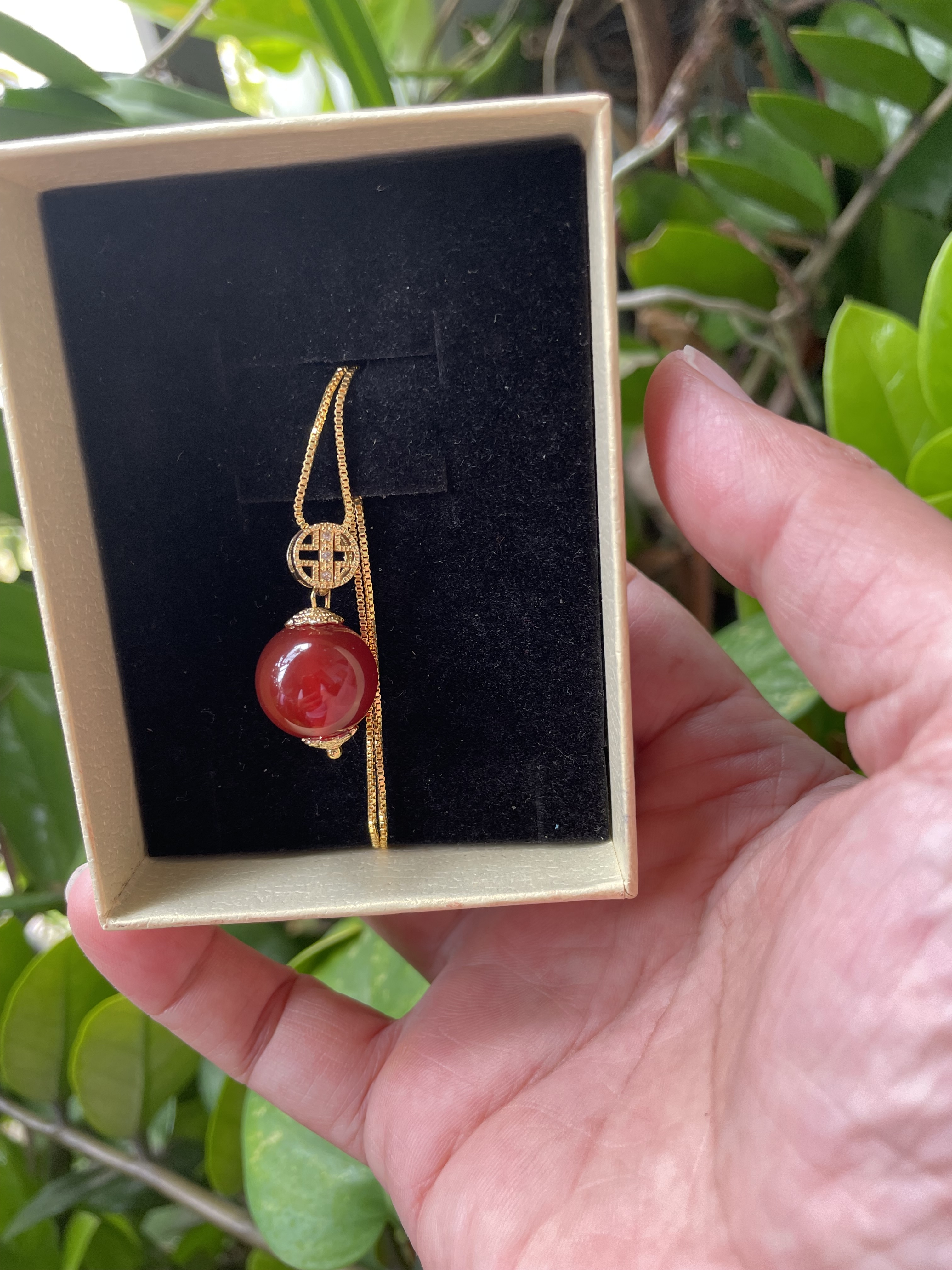 Mặt dây chuyền Mã Não thiên nhiên , Đỏ tươi đẹp xuất sắc , tặng dây chuyền mạ vàng