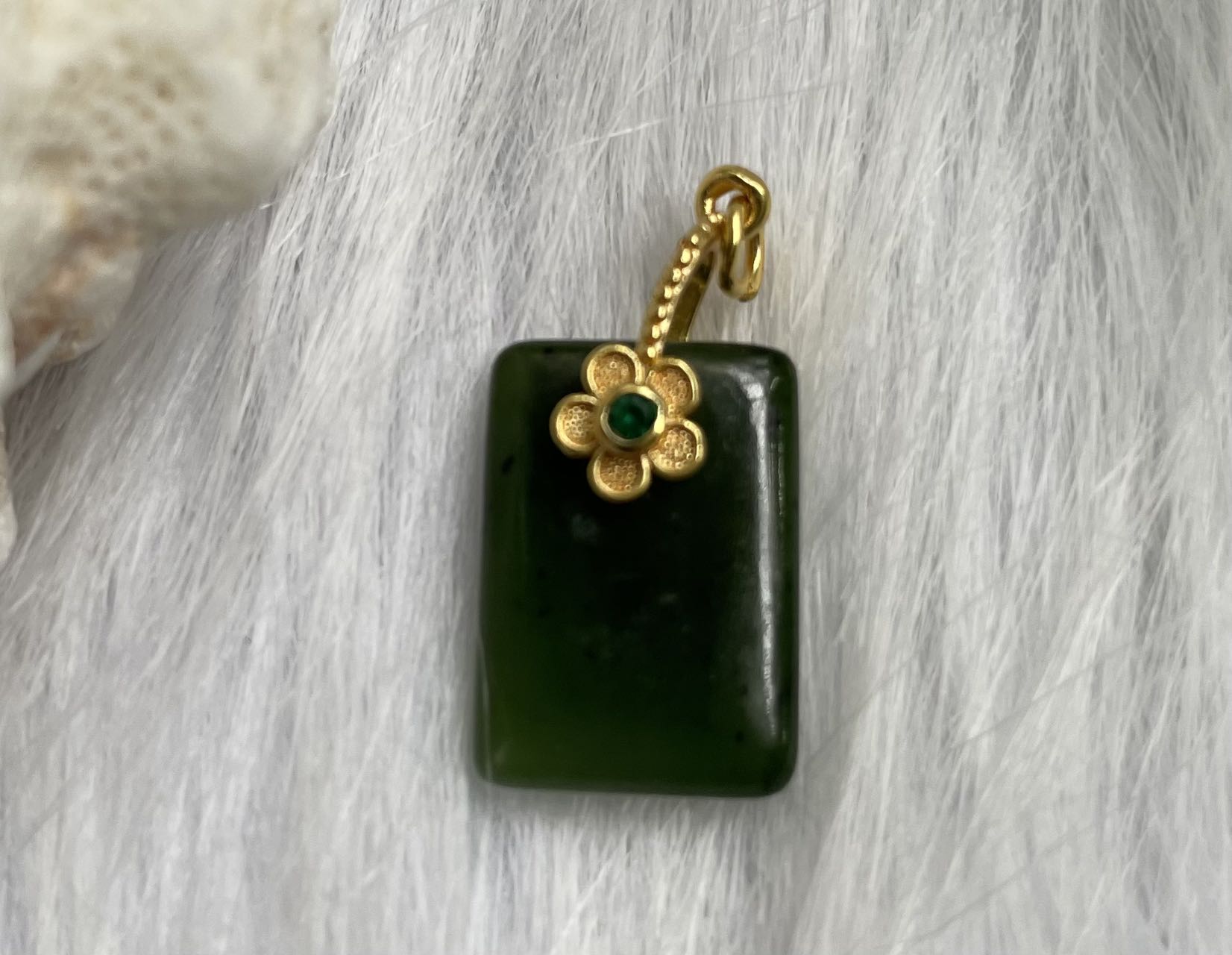 Mặt Dây Chuyền, Charm, Ngọc Xanh Thiên Nhiên , Vô Sự Bài Mini  KT 16.8*12*4.8 (Có Thể Làm Charm Vòng Chuỗi Đeo Tay)