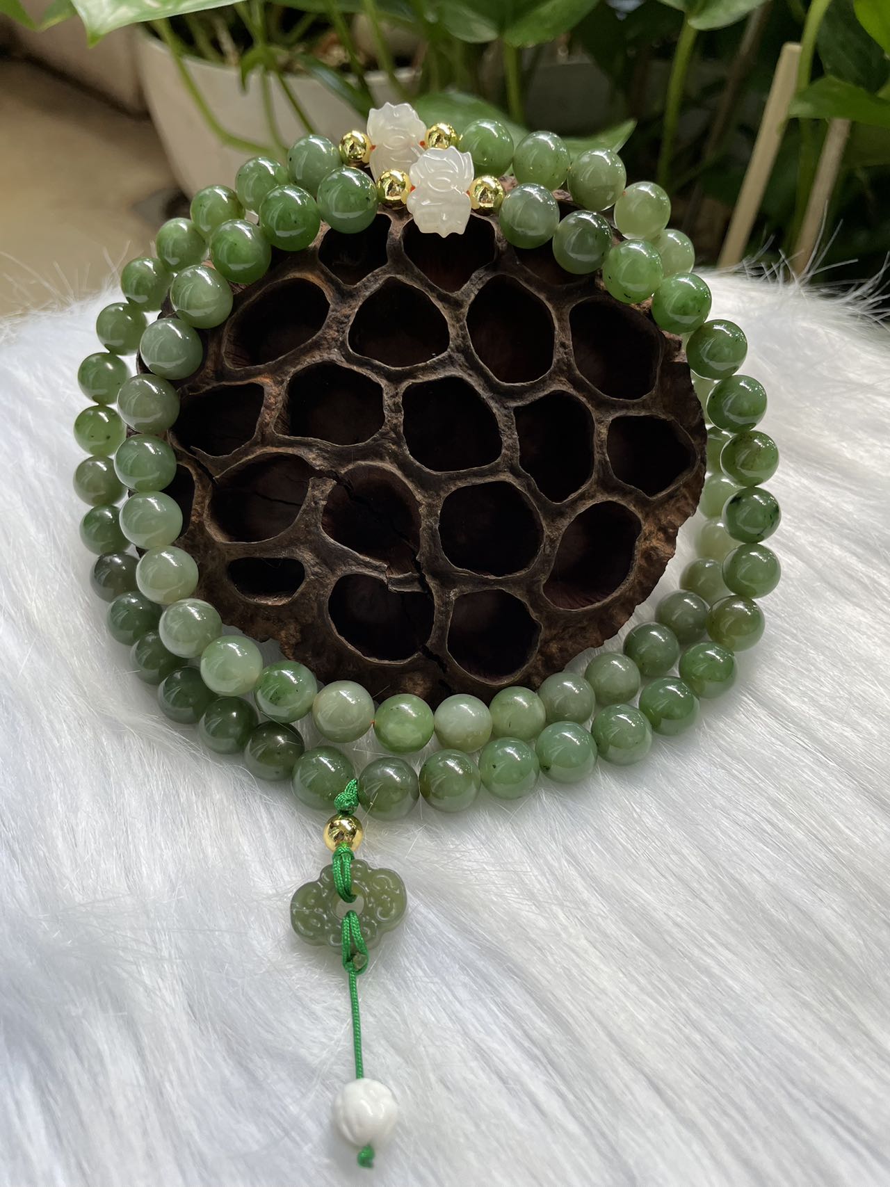 VÒNG CHUỖI HẠT NGỌC BÍCH THIÊN NHIÊN, HẠT LI 10MM ĐEO CỔ , PHỐI CHARM, XANH MÁT, RẤT ĐẸP & SANH TRỌNG
