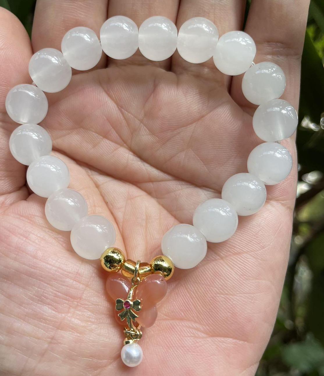 VÒNG CHUỖI NGỌC TRẮNG PHỐI CHARM. HẠT LI 10MM